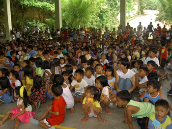 Ad un cenno dell’assistente tutti i ragazzi, come per incanto, smettono i loro giochi, si incolonnano di fronte ad una statua di Maria Ausiliatrice, tirano fuori dalle saccocce la corona del rosario e cominciano a pregare, naturalmente in cebuano.
