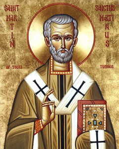 Suo padre, ufficiale dell’esercito romano, chiamò il bambino con il nome di Martino, cioè “piccolo Marte”, il dio della guerra. Nato a Pannonia nel 317, giovanissimo, si arruolò nell’esercito imperiale di Roma. Seguendo il padre nel suo servizio, venne a Pavia, dove venne a contatto con il Cristianesimo e chiese di essere istruito nella fede in Cristo. Ad Amiens, nella Pasqua del 334, ricevette il Battesimo e cominciò a vivere la sua fede con un intenso amore ai più poveri. E’ rimasto famoso l’episodio che narra come in una freddissima giornata, divise il suo mantello per darne metà a un povero. Libero dagli obblighi militari, si stabilì a Poitiers, dove il vescovo Ilario, lo preparò al sacerdozio e gli offrì una casa a Ligugè che Martino trasformò in monastero, vivendo vita comune con alcuni amici, tutto dedito allo studio, alla preghiera e alla contemplazione. Nel 371, fu consacrato Vescovo di Tours: la città e la diocesi trovarono in lui un ottimo e santo pastore, che diventò presto l’evangelizzatore delle regioni centrali della Gallia convertendo al Cristianesimo molte tribù, richiamando alla Chiesa ariani e diversi eretici, resistendo al potere civile che si intrometteva nelle cose della Chiesa. Contemporaneo di S. Ambrogio, Vescovo di Milano, Martino di Tours è uno dei fondatori della Chiesa in Gallia. Nonostante le difficoltà che gli crearono coloro che gli rimproveravano la sua austerità di vita, il Vescovo Martino portò avanti un’opera pastorale assai intensa. A Marmoutier, presso Tours, fondò un altro monastero, dove preparava i giovani al sacerdozio, un vero seminario che darà molti Vescovi alla sua nazione. Intanto, viaggiava di villaggio in villaggio, evangelizzando i poveri e i contadini, fondando parrocchie rurali e organizzando la vita cristiana. In questo modo, per la sua opera e quella dei suoi preti incoraggiati da lui, il paganesimo veniva via via sparendo e si affermava la fede cristiana e la pace religiosa. Morì l’8 novembre 397, considerato uno dei più grandi vescovi di Francia e dell’Europa cristiana nascente. Il suo culto fu subito diffusissimo: decine e decine di comuni portano il suo nome. E’ patrono della Francia modello di fede e di carità .