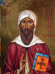 Con il grande monaco irlandese San Columba, che per primo fece fiorire il Cristianesimo in terra di Scozia, fondò monasteri di vita severa e attiva. La Scozia, che allora aveva ancora il nome latino di Caledonia, era popolata da tribù barbare e indomite. Neanche le legioni romane avevano potuto soggiogarle, e per difendere i confini della Britannia dalle loro incursioni era stato necessario costruire gigantesche muraglie, o valli, che sbarravano il paese da levante a ponente. In quella terra San Costantino e San Colomba svolsero insieme la loro pericolosa missione. Ottennero molte conversioni, fondarono chiese, crearono monasteri, ma a un certo punto i barbari presero una breve e sanguinosa rivincita conclusasi con un massacro dei cristiani. Così, nel 598, il Re di Cornovaglia diventato missionario cristiano, restò vittima della violenza dei barbari.
