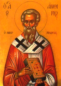 Fin dal IX secolo, i monaci Benedettini avevano dedicato a Sant’Antimo una grande abbazia che sorge, solitaria e severa, tra Siena e Grosseto, sulle pendici del Monte Amiata. Ma di sant’Antimo uomo si sa molto poco. Non per questo, perĂ², la sua figura storica è meno sicura e meno reale del corpo di pietra squadrata e lavorata che dalle balze dell’Amiata ripete il suo nome e testimonia l’antica devozione al Santo. Nativo di Nicomedia, in Bitinia, fu prete e predicĂ² a Roma, o piĂ¹ probabilmente nella Sabina. Imprigionato una prima volta, guarì miracolosamente il Proconsole Piniano, per intercessione della di lui moglie, Lucina.