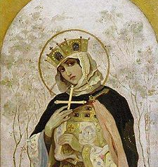 Nata nell’879, Olga aveva sposato il principe Igor, Granduca di Kiev. Dal principe Igor, Olga ebbe un figlio. Restata vedova quando l’erede era ancora minorenne, fu lei a reggere, per vari anni, il governo del suo popolo. Poi abbandonò ogni carica ufficiale e partì da Kiev per recarsi nella lontana Costantinopoli. Lì Olga avrebbe dovuto incontrare l’Imperatore d’Oriente; ma nella missione diplomatica ebbe un inaspettato seguito spirituale. A lungo, infatti, giunta a Costantinopoli, Olga aspettò di essere ricevuta dall’Imperatore Costantino Porfirogenito. Ebbe finalmente una risposta quasi sconcertante: l’Imperatore l’avrebbe ricevuta soltanto se la principessa dei Sarmati si fosse battezzata e fatta cristiana. Può anche darsi che Olga di Russia accettasse il Battesimo più per motivi diplomatici che per desiderio spirituale. Ma la Provvidenza non lavora mai a vuoto. Santa Olga fu la prima russa di sangue reale a ricevere il Battesimo cristiano. L’anziana principessa, convertita quasi per forza, restò folgorata dalla luce della fede. La donna quasi barbara, non fu insensibile alla luce di cristiana civiltà che si levava in quel secolo da Costantinopoli, fulgida capitale dell’Oriente. Tornata a Kiev, portò in mezzo al suo popolo una scintilla di quella luce, un seme di quella civiltà . Fu la più efficace, anche se la più modesta missionaria della fede cristiana in terra di Russia. La conversione, accettata quasi per forza a Costantinopoli, produsse a Kiev i suoi frutti ricchi e maturi. Olga vi costruì la prima chiesa del suo paese – un modesto edificio di legno, secondo la tipica architettura locale, che ripeteva però il nome della sorella maggiore sulle rive del Bosforo, Santa Sofia. Dopo la morte di Olga, avvenuta nel 969, la scintilla della sua fede si comunicò ai figli; e dopo i figli, ai nipoti, e poi ai pronipoti. Dietro l’esempio dei Principi anche il popolo accolse la nuova religione, come qualcosa di non estraneo, ma di familiare, e capace di frutti di bontà . Intorno alla modesta chiesetta di legno di Kiev, la conversione della Russia, iniziata mille anni fa da Santa Olga, cominciò la sua storia, che ancora non è conclusa.
