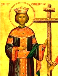 Imperatore, figlio di Costanzo Cloro e di Sant’Elena, nacque verso il 285 in Serbia. Era pagano e visse alla corte di Diocleziano di cui sposò la figlia Fausta. Nel 312, dopo la battaglia sul ponte Milvio, si avvicinò al cristianesimo. Emanò l’Editto di Milano, concedendo ai cristiani libertà di culto. Pose fine alle persecuzioni e concesse ai cristiani di diffondere la loro fede. In seguito fece donazioni alla Chiesa e costruì molte chiese. Come imperatore e responsabile del benessere dei sudditi davanti a Dio, si assunse l’onere di intervenire in questioni teologiche. Presiedette il Concilio di Nicea e cercò di mediare le forze che si contrastavano all’interno della Chiesa. Si fece battezzare su letto di morte. La straordinaria personalità e la sua opera a favore del Cristianesimo, portarono i cristiani ad esaltare in tutti i modi la figura dell’imperatore Costantino, anche se fra i molti suoi meriti si potevano riconoscere non poche deficienze. Le lodi, a volte scopertamente adulatrici, l’interessato atteggiamento degli ariani e infine, un malcelato antagonismo tra la crescente importanza politico-religiosa della “nuova” Roma in contrasto con la vecchia capitale dell’impero, condussero gli orientali a cingere con l’aureola della santità la fronte del primo imperatore cristiano. La nascente rivalità tra l’Oriente e l’Occidente ecclesiastico a causa della controversia ariana del sec. IV, e tra Costantinopoli e Roma, condusse gli orientali a proclamare Costantino “uguale agli Apostoli”. Il culto di Costantino sviluppatosi, principal-mente negli ambienti ariani di Costantinopoli, si andò lentamente estendendo a tutto l’Oriente e se ne celebrò la festa come di un confessore. In Occidente, invece, pur riconoscendosi ed esaltandosi la figura e l’opera di Costantino, non si arrivò all’esagerato fanatismo degli orientali; ma in parecchi luoghi se ne introdusse il culto. Oggi, la figura di Costantino continua ad avere una certa risonanza nell’anima del popolo. In Grecia, infatti, nel giorno della sua festa, si esegue ancora una danza sulla brace accesa. In alcune regioni d’Italia, rimaste più a lungo sotto il dominio bizantino, come la Calabria e la Sardegna, si sono conservate più evidenti tracce dell’antico culto.