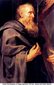 Filippo è uno dei dodici apostoli del divino Maestro. Era nativo di Betsaida, una piccola località sul lago di Tiberiade. Era amico di Natanaele (Bartolomeo) e fu lui stesso a presentare l’amico a Gesù: “Abbiamo trovato colui del quale hanno scritto Mosè nella Legge e i Profeti, Gesù di Nazaret... Vieni e vedi” (Gv 1, 43-44). Quando Gesù sta per compiere la moltiplicazione dei pani, si rivolge a Filippo: “Dove compreremo pane sufficiente a sfamare tutta questa gente?” (Gv 6, 5-6). Filippo fu così testimone oculare della potenza di Gesù. Durante l’Ultima Cena Filippo dice a Gesù: “Mostraci il Padre e ci basta”. A lui, Gesù risponde: “Da tanto tempo io sono con voi e tu non mi hai conosciuto, Filippo? Chi ha visto me ha visto il Padre. Come puoi dire, mostraci il Padre? Non credi che io sono nel Padre e il Padre è in me?” (Gv 14,8-11). Di Filippo non sappiamo più nulla di preciso: sicuramente, dopo l’ascensione di Gesù al cielo e ricevuto il dono dello Spirito Santo nella Pentecoste, Filippo, come i suoi colleghi, partì per la sua missione nel mondo. Un’antica tradizione spiega che morì crocifisso come il suo Maestro a Ierapoli (Asia Minore) durante la persecuzione di Domiziano.