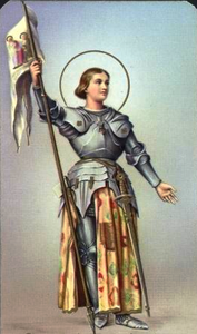 Nota al mondo intero come “la Pulzella d’Orleans”, Giovanna era una bambina come le altre, anche se tanto buona e pia, nata a Domrémy (Francia) nel 1412. A 13 anni, disse di sentire alcune “Voci celesti” che la invitavano a una vita sempre più santa e, più tardi, a mettersi a capo di un esercito per liberare la Francia oppressa. In quel tempo, il re d’Inghilterra, Enrico V di Lancaster, aveva invaso con le sue truppe il paese e si era impossessato del trono francese. Giovanna, 17 anni appena, ispirata da Dio, convinse il capitano Roberto di Baudricourt , a darle una scorta per recarsi dal Delfino e incitarlo alla rivolta. Il 26 febbraio 1429, il Delfino la ricevette… Ella, con l’aiuto di Dio, galvanizzò lui e la corte. Venne reclutato un esercito e Giovanna d’Arco si pose alla sua testa, meravigliando tutti per la sicurezza con cui maneggiava le armi. Conquistò Orleans e dopo una splendida vittoria a Patay, entrò vittoriosa in Reims, dove il Delfino Carlo VII venne consacrato re di Francia. Fu un trionfo per Giovanna, ma durò poco. Carlo VII, forse geloso del suo successo e mal consigliato, cominciò ad ostacolarla e stipulò una tregua con gli inglesi. Giovanna, con i suoi uomini, nella primavera del 1430 liberò Compiègne assediata dai Borgognoni. Durante una sortita, la giovane eroina fu fatta prigioniera dei Borgognoni, alleati degli inglesi, e consegnata al nemico. Gli inglesi organizzarono contro di lei un processo, con l’accusa infondata di eresia. Giovanna rifiutò la legittimità del tribunale che la giudicava; ma, da giudici iniqui, fu condannata al rogo per menzogna, empietà e superstizione. L’ingiusta esecuzione ebbe luogo a Rouen il 30 maggio 1431. Giovanna aveva soltanto 19 anni. Circondata dalle fiamme, invocò il nome di Gesù, abbracciò la croce presentatale, morendo come una martire. Il processo contro di lei fu riaperto nel 1450 ed ella ne uscì completamente riabilitata, con l’aureola della santità . Nel 1920, Papa Benedetto XV la iscrisse tra i santi. E’ patrona della Francia e, per volere di Papa Pio XI, protettrice della Gioventù femminile dell’Azione Cattolica.