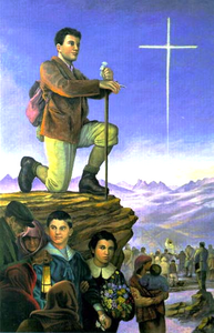 Figlio del senatore Alfredo Frassati, fondatore de “La Stampa”, ambasciatore d’Italia a Berlino, Pier Giorgio nasce a Torino il 6 aprile 1901. Dalla madre, dal suo primo istitutore il salesiano don Antonio Cojazzi, dai Padri gesuiti del liceo che frequenta, riceve una limpida e forte educazione cristiana. Ancora bambino, scopre Gesù Cristo come l’unico Amore della vita e Signore della storia. Ama gli altri, generoso e altruista. Gode di tutte le realtà belle della vita, la natura, l’arte, l’amicizia, lo sport. I piccoli, gli ultimi sono i suoi prediletti. Pensa a spendere la vita come dono di carità tra i lavoratori più oppressi della fatica, i minatori, e per questo frequenta il Politecnico di Torino per diventare ingegnere minerario. In nome di Gesù Cristo Pier Giorgio studia e sta con gli amici, prega intensamente con il Rosario tra le mani, partecipa tutti i giorni alla Messa con la Comunione (dall’età di 13 anni), si impegna nella società , nella cultura e nella politica. Fa parte, attivissimo, delle Conferenze di S. Vincenzo e serve i poveri nelle soffitte. Fa parte del circolo universitario, si iscrive al Partito Popolare, fondato da don Sturzo, e si batte per costruire una società in Cristo, contro qualsiasi dittatura. Dà il suo nome agli “adoratori notturni” e passa le notti in preghiera davanti al Tabernacolo. Nel medesimo tempo è un appassionato della montagna e delle corse in bici e in auto. Fa parte del Terz’Ordine Domenicano, con il nome di “fra Gerolamo”. Gli amici lo seguono, perché è un vero leader, umile, tenace, affascinante. Incute rispetto per cultura e fede, ai liberali come suo padre, ai socialisti come Turati. I violenti di ogni colore lo temono, perché sanno che reagisce con coraggio, mitezza e forza. Configurato al Cristo offerto al Padre, già si prepara a morire. Si spegne, colpito da poliomielite fulminante il 4 luglio 1925, a 25 anni. La sua fama di santità dilaga nel mondo intero. Il 20 maggio 1990, è beatificato da Giovanni Paolo II che lo definisce: “il Giovane delle Beatitudini”.