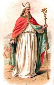 E’ uno dei santi più celebri e più amati, in tutti i tempi e in tutti i paesi. Nicola visse in Licia, nell’Asia Minore, al tempo di Costantino, e fu Vescovo di Mira. Era già celebre tra i Santi quando, al tempo delle invasioni turche, le sue reliquie furono poste in salvo da 62 soldati di Bari, diventati devoti corsari. A Bari, il 9 maggio del 1087, le reliquie di San Nicola vennero accolte con grandissimo onore, e conservate nella celebre cattedrale del grande porto pugliese. Da Bari il culto di San Nicola, corse terre e mari giungendo fin nella lontana Russia, di cui il Vescovo di Mira divenne, ed è ancora, il patrono. Egli fu un po’ il San Francesco dell’Alto Medioevo, grazie ai suoi miracoli di delicata carità , specialmente in favore dei semplici e dei piccoli. Le storie di San Nicola erano numerosissime, e tutte pittoresche. Le più caratteristiche sono quelle dei marinai, che il Vescovo di Mira salva dalle tempeste (e infatti i marinai considerano San Nicola tra i loro protettori), e quelle degli scolaretti (che lo venerano anch’essi come Patrono). Tra queste una che ha per protagonista un feroce macellaio pagano di Mira, il quale sgozza tre fanciulli e li taglia a pezzetti. Interviene il Vescovo, ricompone i tre ragazzi dai pezzetti, rende la vita, e converte il macellaio. Un’altra storia ugualmente celebre e frequentemente raffigurata, è quella dei tre globi d’oro che il Santo gettò, dalla finestra, nella casa di tre oneste fanciulle destinate dal padre al meretricio, perché, poverissime e senza dote. Altre storie parlano di miracolose elargizioni di cibo, di ingiuste esecuzioni sospese, di giuramenti sacrileghi smascherati. E dovunque spuntano fanciulli beneficati e genitori esauditi. San Nicola è stato identificato con il benefico personaggio natalizio che porta doni ai bambini e li rende felici. Non c’è dubbio, ormai, che la figura del moderno Babbo Natale, sia ispirata proprio a San Nicola, e che il cappuccio foderato di pelliccia non sia che la trasposizione di una mitria vescovile. Lo conferma, del resto, anche il nome: perché il Babbo Natale della tradizione nord-europea - e oggi americana - si chiama Santa Claus, e tale nome deriva da Nicola, attraverso il tedesco Nikolaus.