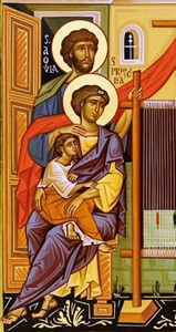 Priscilla è una matrona cristiana non bene identificata che fondò il cimitero catacombale sulla Via Salaria a Roma. Le Catacombe di Santa Priscilla esistono ancora e sono meta di numerose visite. Negli Atti degli Apostoli (18,2), tuttavia, vengono nominati due giudei di nome Aquila e Priscilla, marito e moglie, costruttori di stuoie come San Paolo. Fu accolto da loro a Corinto e con-visse a pensione nella loro casa. L’Apostolo intuì subito le buone qualità dei due coniugi e l’utilità che ne poteva derivare per la sua difficile missione a Corinto. Esercitando essi il medesimo mestiere di Paolo (fabbricanti di tende), diedero all’apostolo agio di poter provvedersi il necessario alla vita senza essere di peso a nessuno. Quando S. Paolo, terminata la sua missione a Corinto, volle far ritorno in Siria, ebbe compagni di viaggio Aquila e Priscilla fino ad Efeso, dove essi rimasero. Ad Efeso li vediamo premurosi, dopo la partenza dell’apostolo, nell’istruire “nella via del Signore”, cioè nella catechesi cristiana, nientemeno che il celebre Apollo, l’eloquente giudeo-alessandrino, versatissimo nelle Scritture, ma ignaro di qualche punto essenziale della nuova dottrina cristiana, come il battesimo di Gesù. Aquila e Priscilla, mossi da apostolico zelo, si presero cura di completare la sua istruzione e probabilmente di battezzarlo prima che egli partisse per Corinto. Ad Efeso offrirono la loro casa a servizio della comunità per le adunanze culturali (ecclesia domestica). S. Paolo sarebbe stato loro ospite anche ad Efeso, come già lo era stato a Corinto. Scrivendo infatti da Efeso (verso il 55) la prima lettera ai Corinti, dice: “Molti saluti nel Signore vi mandano Aquila e Priscilla, con quelli che nella loro casa si adunano, dei quali sono ospite”. E scrivendo da Corinto ai Romani li cita per primi (Rm 16, 3-5). L’ultima citazione di Aquila e Priscilla l’abbiamo nell’ultima lettera di S. Paolo che (prigioniero di Cristo per la seconda volta a Roma) scrive al suo discepolo Timoteo, Vescovo di Efeso, incari-candolo di salutare Priscilla e Aquila, che di nuovo si erano recati ad Efseo (2 Tim 4, 19).