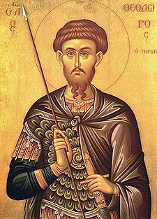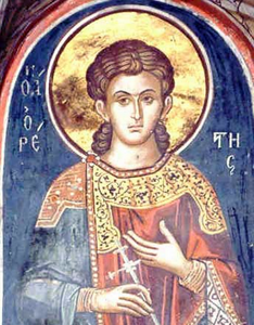Veneratissimo nell’antichità e nel Medioevo, specialmente in Oriente, il centro del suo culto era ad Euchaita nel Ponto, dove era custodito il suo sepolcro, sul quale già nel sec. IV sorgeva una basilica ornata di pitture e mosaici, meta di continui pellegrinaggi. In questa basilica, nel giorno della festa di S. Teodoro, Gregorio di Nissa (†394) recitò un discorso che è considerato la più antica fonte su Teodoro. Da esso apprendiamo che il martire era originario dell’Oriente; arruolato nell’esercito, era stato trasferito con la sua legione nei quartieri invernali di Amasea, al tempo dell’imperatore Galerio Massimiano. Improvvisamente fu promulgato un editto col quale si ordinava ai soldati di sacrificare agli dèi; Teodoro si rifiutò di ottemperare all’ordine e nonostante le sollecitazioni del tribuno, rimase fermo nella sua decisione.