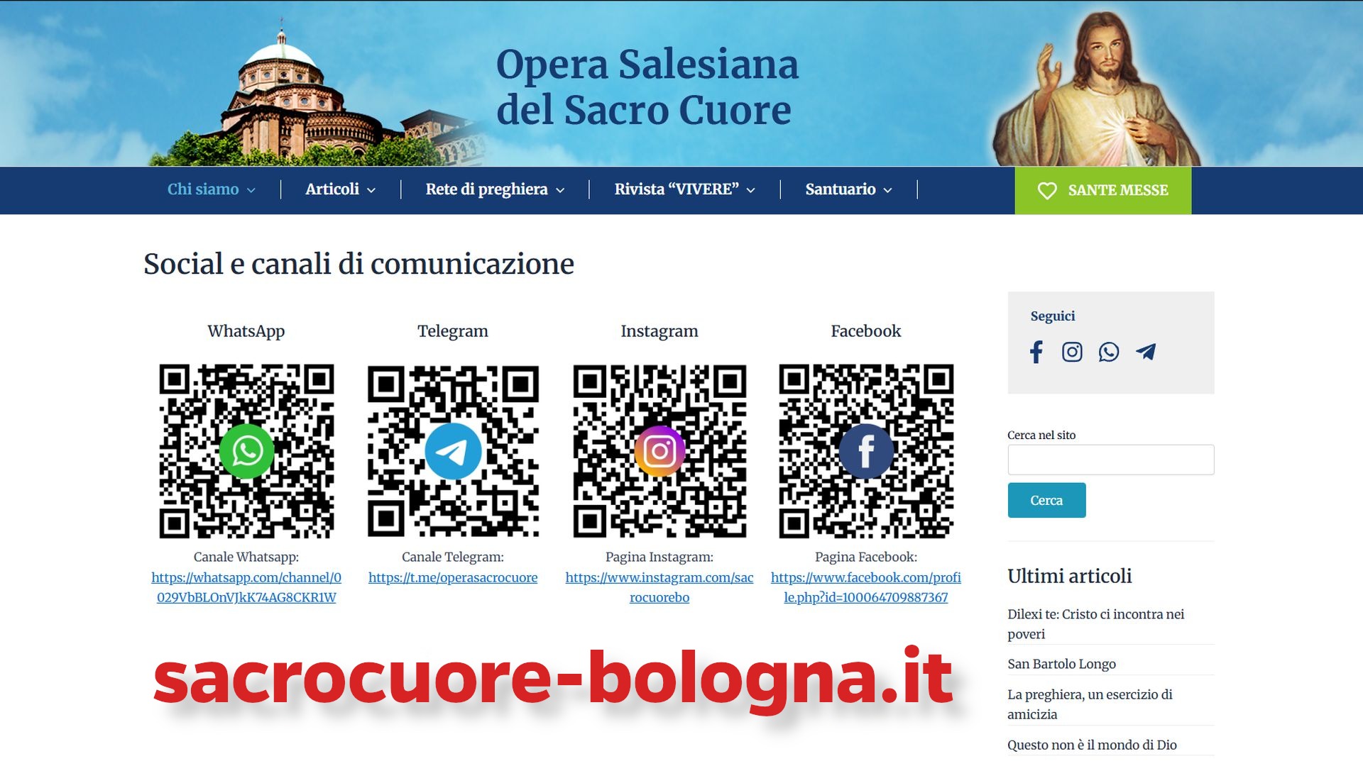 Pubblicheremo i testi della rivista cartacea, riprenderemo articoli passati ancora attuali, e ne proporremo di nuovi pensati per il web. Gli articoli sono divisi in dieci categorie, che vanno da Testimoni della fede (in cui mescoleremo storie di santi e testimonianze su come vivono la fede vari personaggi) a Sacro Cuore e dintorni, rubriche che ricorderete di avere già visto sulla rivista come Missioni, Gesù e Maria o di Spiritualità più generale, comunicazioni di Attualità, rubriche nuove della rivista che partono dal numero di gennaio 2026 con anche una categoria specifica sul sito, come Storie di vocazione e Soprannaturale quotidiano, e poi Don Bosco oggi per la specificità salesiana e Vita del Santuario per ancorarci alla concretezza del nostro Santuario e – perché no? – di altre chiese e templi dedicati al Sacro Cuore di Gesù. Per alcuni di queste rubriche e categorie chiediamo il vostro aiuto: Storie di vocazione racconterà come il Signore ha chiamato ad una vocazione specifica delle persone; Soprannaturale quotidiano intende pubblicare episodi che ognuno di noi può aver vissuto nella sua vita e che potrebbero essere fortuite coincidenze oppure anche essere letti come segni del Cielo; in Vita del Santuario oltre al nostro Santuario del Sacro Cuore di Bologna vorremmo raccontare storie di come la devozione del Sacro Cuore viene vissuta anche altrove: su queste nuove linee sollecitiamo e attediamo anche i contributi dei lettori.